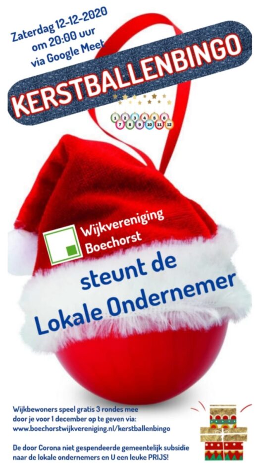 Het is bijna december, de maand van gezelligheid en cadeautjes. De maand waar veel ondernemers het van moeten hebben. Daar draagt Wijkvereniging Boechorst graag haar steentje aan bij met onze laatste activiteit van 2020: op 12 december spelen wij een virtuele KERSTBALLENBINGO! Speelt u een spelletje mee voor een cadeaubon van een lokale ondernemer? Geef…
